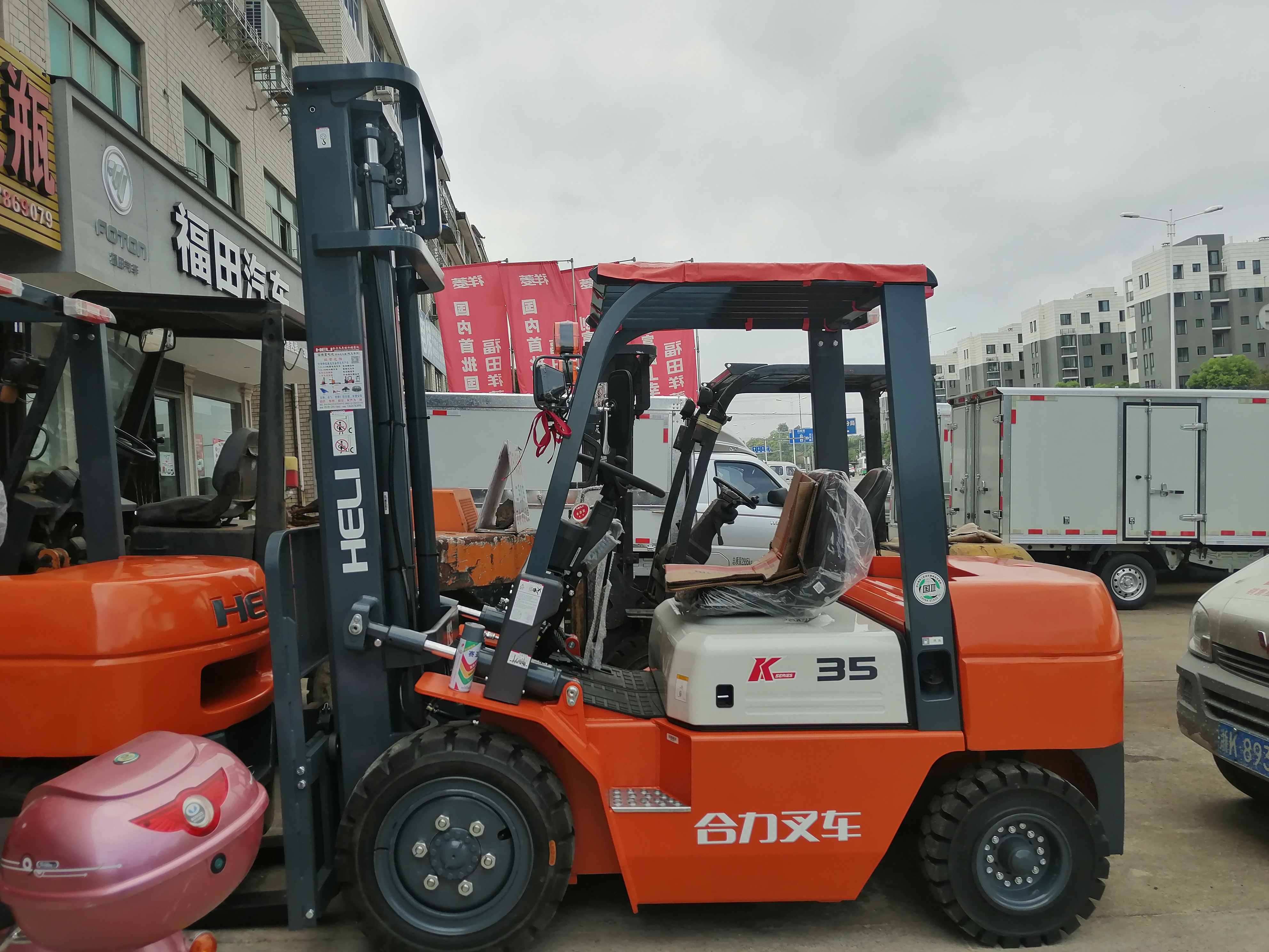 麗水市恒輝叉車有限公司出售了一臺3.5T的叉車,他可以很好的滿足客戶需要鏟大噸位的磚塊等物品的需求。以下是這臺叉車的實(shí)物圖。